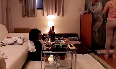 Japanese couple chat to Creampie Drill the wife while husband have to watch