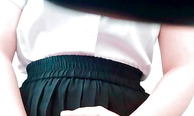Dressing a dark-hued-haired Asian beauty in uniform, giving blowjob, creampie sex, and climax in her mouth, uncensor