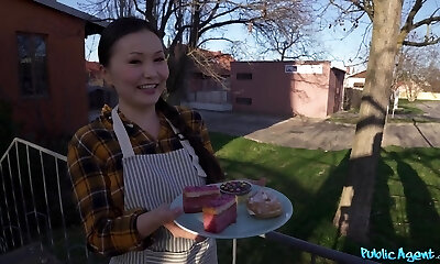 Slutty Japanese maid Ami Kitazawa pleasures land lord's cock