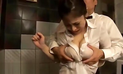 Japanese hefty boobs maid fucked hard at work