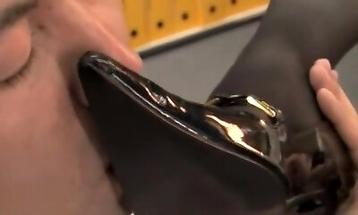 When the Domina Gets Home, Makes Slave Deodorize Perspiring Pantyhose, Lick and Clean Sweaty Feet and Dirty Pussy.
