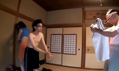 Father-in-law abuses his Asian daughter-in-law-in-law while his son works